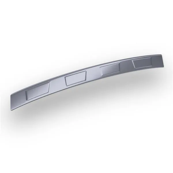 - Srebrne dedykowane nakładki na zderzak ze stali kwasoodpornej tłoczone są w precyzyjnie zaprojektowanych matrycach wytwarzanych przez obrabiarki CNC i wycinane przy użyciu najnowocześniejszego lasera światłowodowego, co gwarantuje ich doskonałe dopasowanie do tylnego zderzaka danego auta.