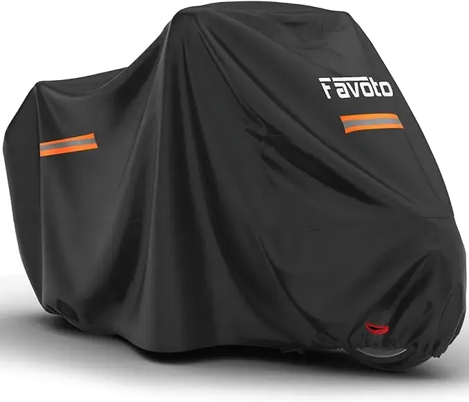Pokrowiec zabezpieczający pojazd przed zanieczyszczeniem oraz wpływem warunków atmosferycznych. Wykonany z wodoodpornego nylonu podwójnie zszywanego w celu zwiększenia jego wytrzymałości i trwałości. Dzięki odpowiedniemu krojowi, idealnie pasuje do motocykla. W dolnej przedniej części znajduje się specjalny ściągacz zachodzący za przednie koło i przytrzymujący pokrowiec we właściwym miejscu.