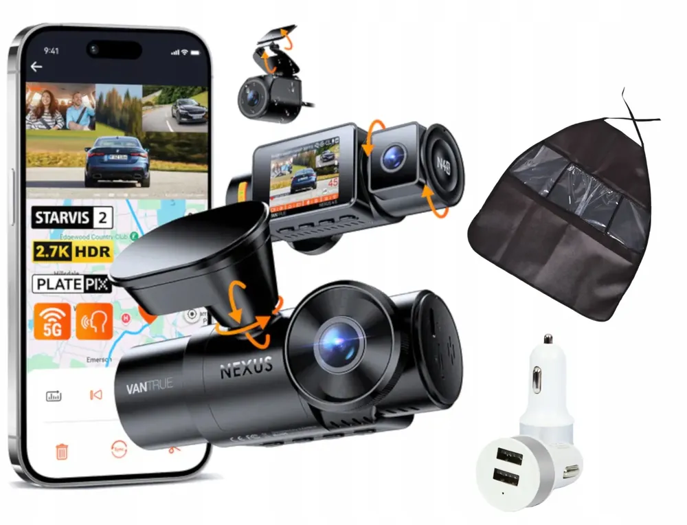 To zestaw składający się z dwóch kamer – przedniej i tylnej. Oba urządzenia nagrywają filmy w rozdzielczości Full HD i są wyposażone w szerokokątne obiektywy, dzięki którym nagrania uchwycą wszystko, co dzieje się przed i za Twoim autem. Dodatkowo, tylna kamera jest równocześnie kamerą cofania, która ułatwi Ci parkowanie, pokazując obraz z tyłu samochodu gdy wrzucisz wsteczny bieg.
