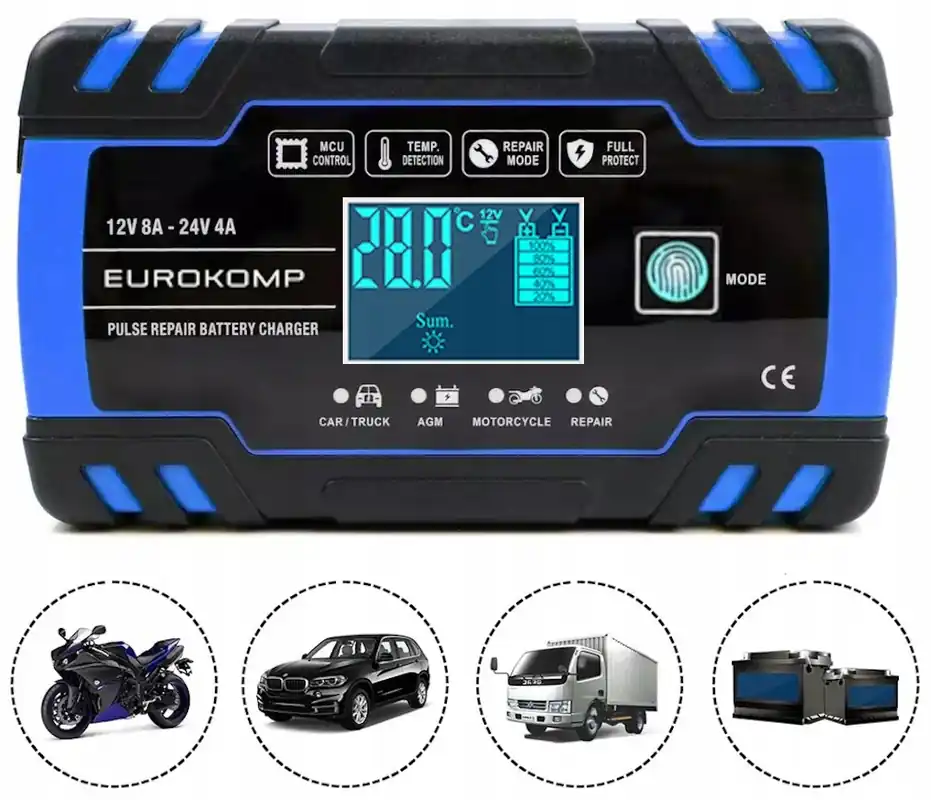 Prostownik inwerterowy BJC zapewnia możliwość skutecznego i efektywnego ładowania i rozruchu akumulatorów zarówno 12V jak i 24V.
