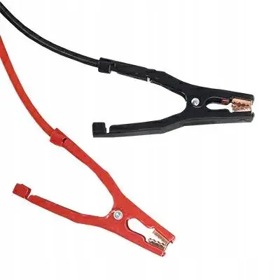 Max natężenie (A) – 800 średnica kabla (mm) – 9,5 (linka miedziowana wraz z izolacją gumową) długość przewodu wraz z żabkami (m) – 4 długość żabek (mm) – 180 rozstaw rękojeścii (mm) – 85 ilość linek – 280 średnica linek (mm) – 0,26 zacisk żabki w stalowej oprawie, powlekany, miedziany (gwarantuje maksymalne przewodzenie prądu) pakowane w praktycznym etui ułatwiajacym spakowanie i zabezpieczajacym przed zabrudzeniami.