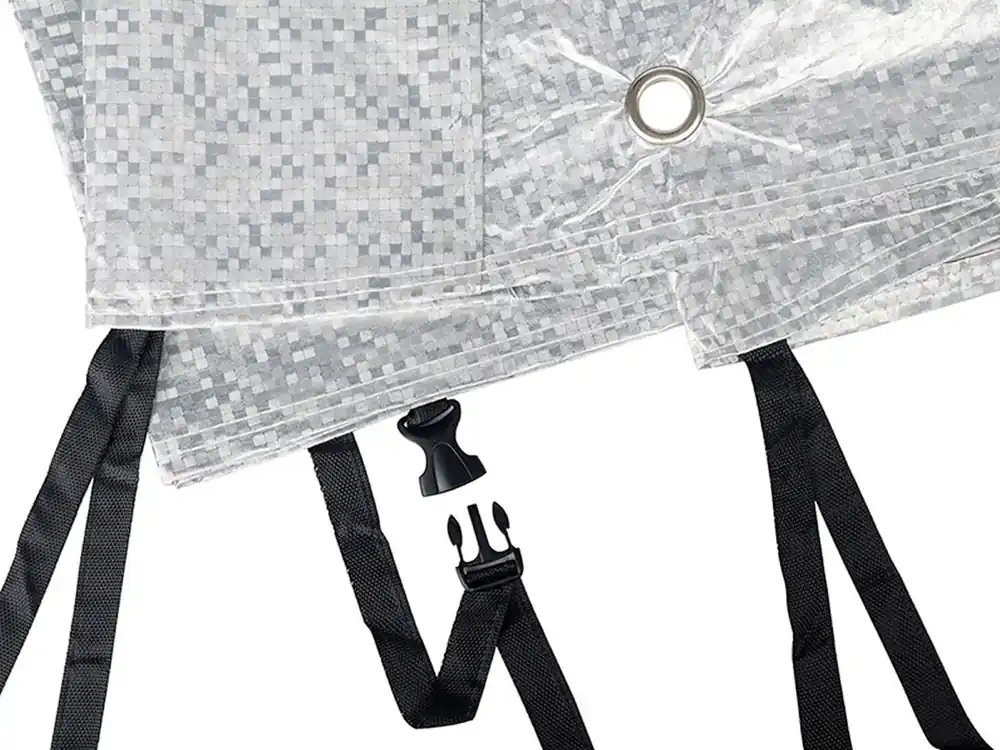 Dodatkowo w dolnej środkowej części wszyty jest pasek, służący do spięcia pod silnikiem. Dzięki temu pokrowiec nie spadnie z motocykla nawet przy bardzo silnym wietrze. Dwa niewielkie otwory w przedniej części umożliwiają przełożenie przez nie linki lub łańcucha antykradzieżowego. Jest to pomocne rozwiązanie dla osób parkujących swoje pojazdy na niestrzeżonych parkingach. Pokrowiec ma niewielkie gabaryty i spakowany jest w poręczną plastikową torebkę. Możliwość zastosowania na zewnątrz, jak i wewnątrz.