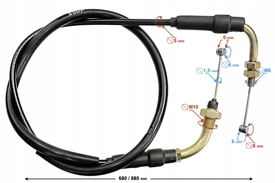 • długość pancerza linki: 680 mm
